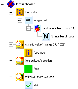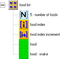 number of the food from the food list. We will take numeric value 1 of the square and use it as the food index to get