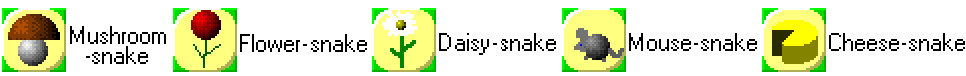 Our next program will be a game called Snake. You have probably already seen such a game before. A snake moves around the sheet, eating food, and it gets one piece longer with each gulp. We will improve the game. The snake will eat various kinds of food, and its pieces will vary accordingly to what it has eaten.