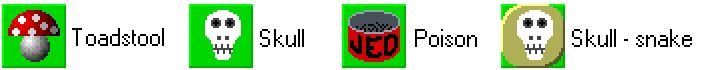 In a similar way, create three items with pictures of poisons, and one piece of the snake with a picture of a skull: