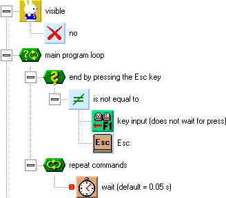 Timing with the value of 0 is useful in situations, when you need higher program performance, or when the timing after 0.055 seconds is too rough. It ensures fluent redrawing of the window, maximum program speed, and sufficient cooperation with Windows. The program speed is dependent on the computer speed now. We could use System Monitor to see that the program consumes most of the computer performance, even if it seems to be in a relatively quiet state.