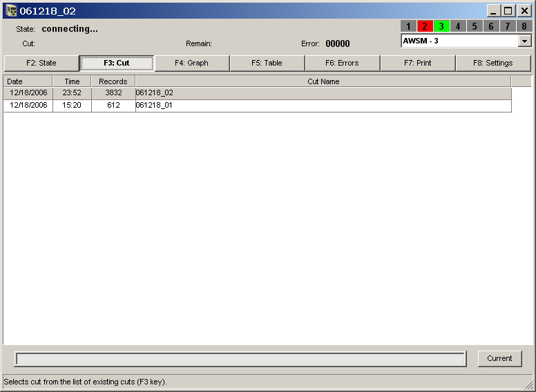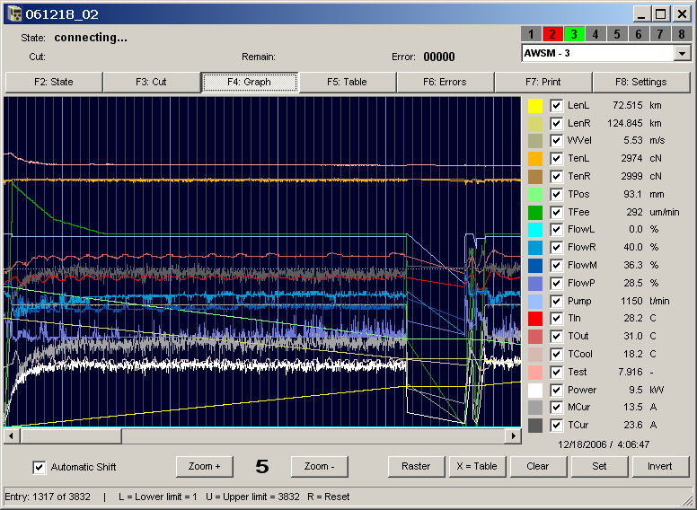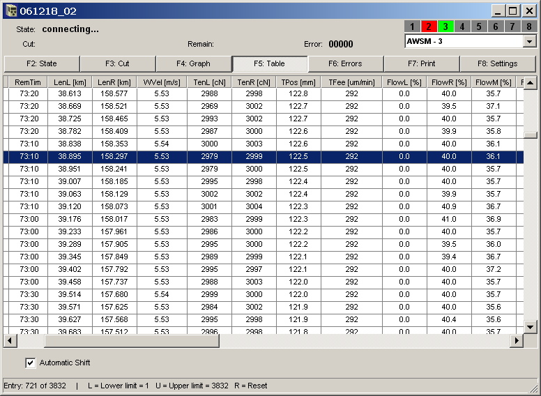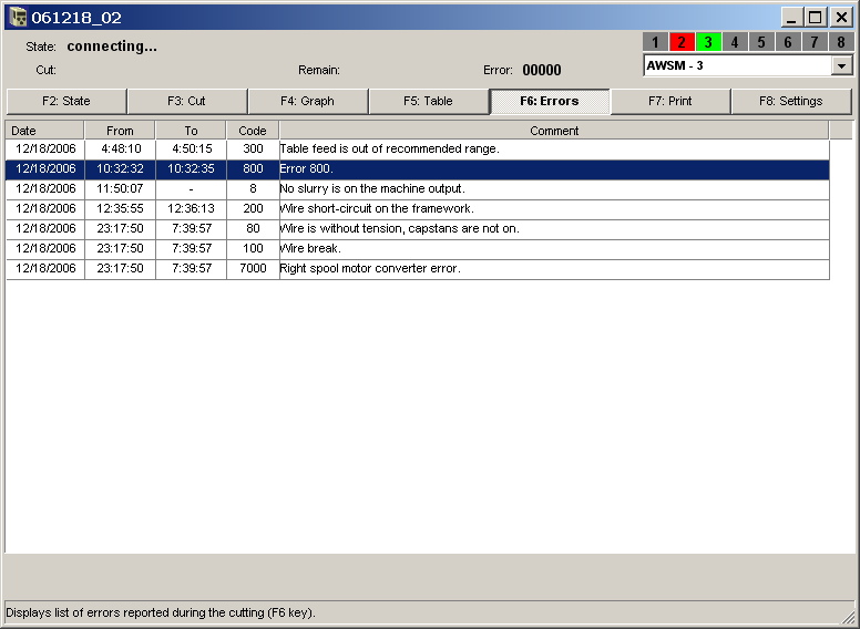 - Zobrazení seznamu chyb hlášených během řezání.