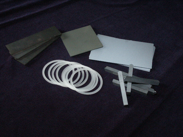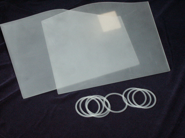 a krystalové desky a kroužky. Desky 240 x 240 x 2,32