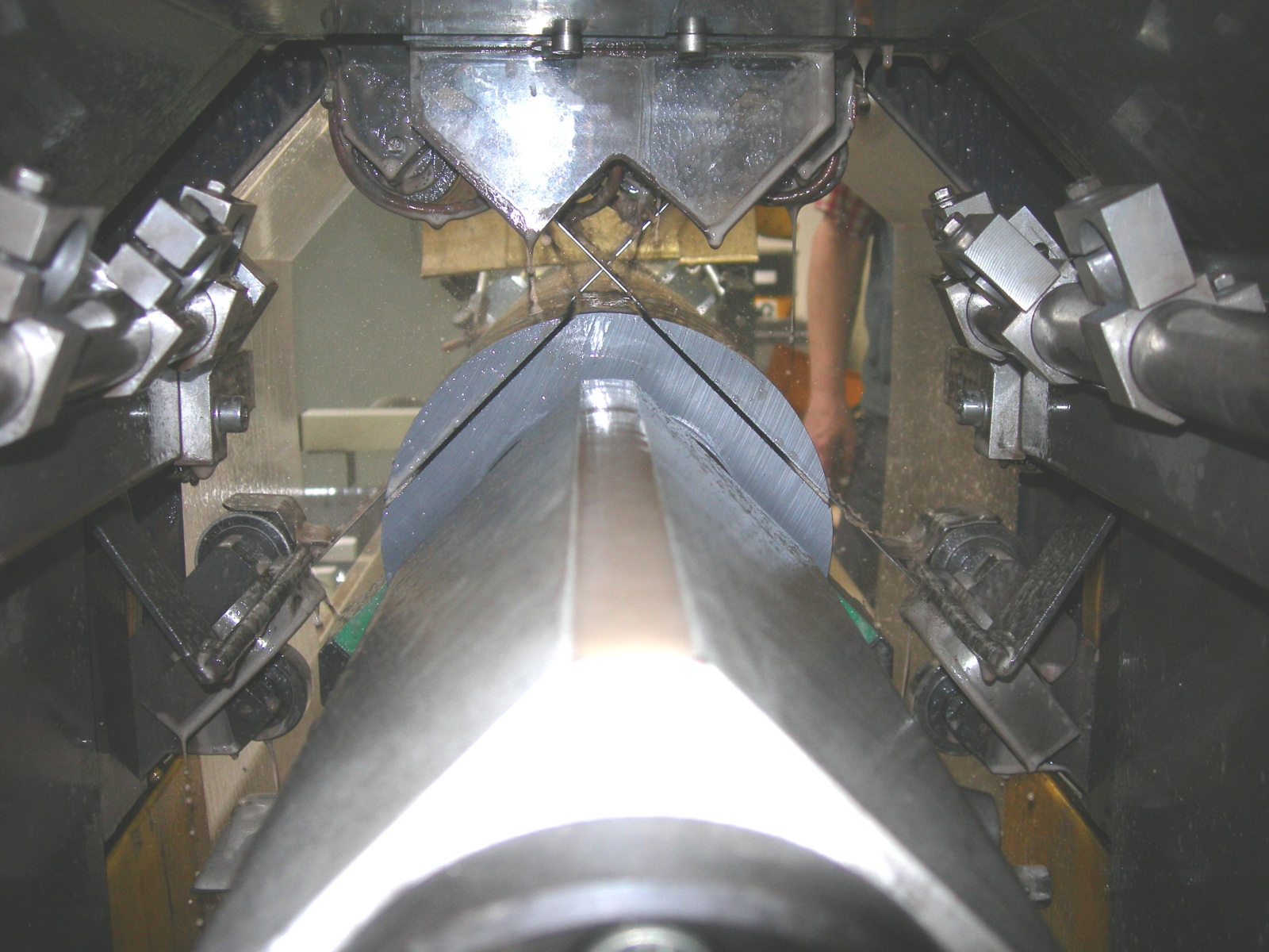 Dva diamantové pásy čtvercující křemíkový ingot - stroj SQM 2800.0.