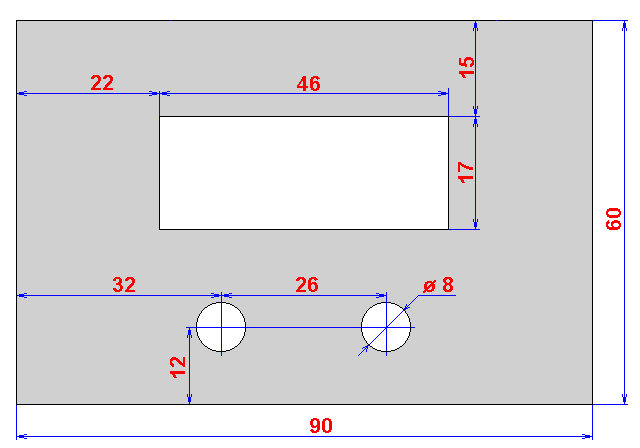 Všechny díry vyvrtejte nejdříve vrtákem 0.8 mm. Poté převrtejte díry s větším průměrem podle následujícího obrázku. Po vyvrtání děr začistěte otřepy děr větším vrtákem (lehkým otáčením v ruce). Ořežte lupénkovou pilkou spoj na správnou velikost a okraje zarovnejte pilníkem. Lupénkovou pilkou vyřízněte i otvor pro piezoreproduktor (předvrtejte v otvoru díru pro nasazení plátku pilky). Omyjte z desky fotocitlivou vrstvu (lihem nebo benzinem), měděné plochy očistěte měkkou gumou a nalakujte plošný spoj pájecím lakem (roztok kalafuny v lihu).