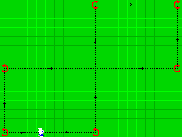 V dalším programu se naučíme používat podmíněné provádění příkazů. Petříka necháme procházet se po ploše okna, na které rozmístíme různé značky. Podle značek se bude rozhodovat, kterým směrem se vydá dále.