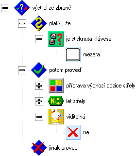 Pokud bychom původní ovládání použili pro střílení, tak by nám možná mohlo vadit, že se nemůžeme otočit na cíl, aniž bychom přitom nepopošli o krok k cíli. Uděláme si proto malé vylepšení ovládání. Jestliže nebude Petřík otočen v požadovaném směru, nejdříve se tam otočí a až potom se rozejde. Bude tak možné Petříka krátkým ťuknutím na klávesu otočit a až držením klávesy ho rozejít vpřed. Upravte obsah funkce podle následujícího obrázku.