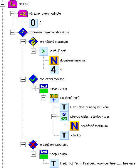 Založte nový program s názvem Had (popř. Had 2, pokud program tohoto jména již existuje). Otevře se program zející prázdnotou a bez jediného příkazu, ale to nám nevadí, protože za chvíli okna programu zaplníme hezkou novou hrou. Jestli máte zájem, můžete otevřít program Had již vytvořený v ukázkových programech Petra.