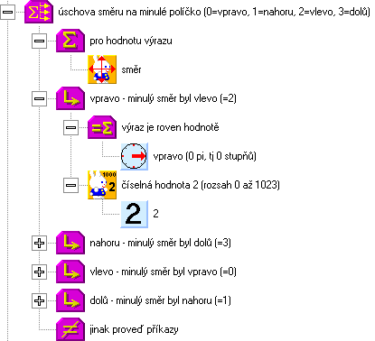 otočíme Petříka (tedy hlavu hada) doleva a zapneme příznak,