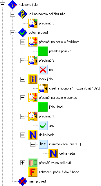 je-li na políčku jídlo. Jídlo jsme si označili přepínačem