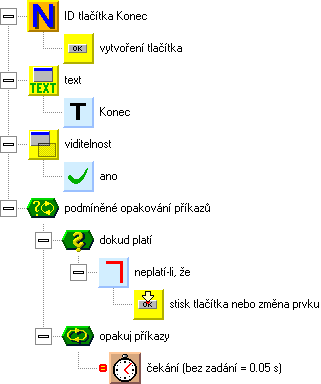 V okně Společné proměnné a funkce vytvořte číselnou proměnnou s názvem ID tlačítka Konec a v hlavní funkci sestavte program podle následujícího obrázku.