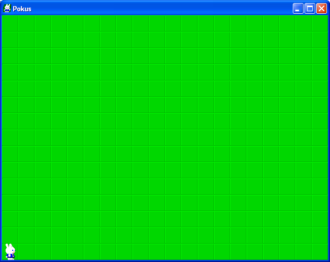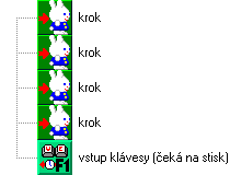 Nyní můžete program opět spustit. Králík odcupitá několik kroků doprava a tam se zastaví a čeká. Stisknete-li jakoukoliv klávesu, okno se zavře.