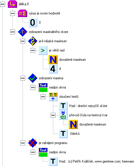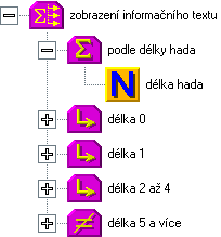 Podobně jsou sestaveny i větve pro ostatní délky hada. Všimněte si, že můžeme jednu větev větvicí konstrukce použít pro více hodnot délek.