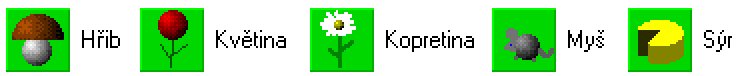 Připravíme jídlo, které bude had požírat. Vytvořte pět nových předmětů a nakreslete do nich obrázky hadího jídla. Například: