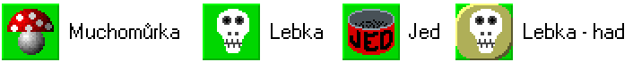 Podobně vytvoříme tři předměty s obrázky jedu a jeden článek hada s obrázkem lebky: