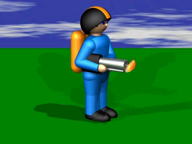 Na závěr se ještě pozastavme blíže u sprajtů. Jak jsme si již řekli, sprajty jsou pohyblivé grafické objekty. Jednotlivým obrázkům jedné animace říkáme fáze animace. Sprajt může mít jednak animace v klidovém stavu (fáze pro klid) a jednak animace při pohybu (fáze pro pohyb). Sprajt může mít libovolný počet směrů. Systém sám volí nejbližší směr podle toho, kterým směrem se sprajt pohybuje. Směr lze měnit i programově (jistě si vzpomínáte na příkazy pro otáčení Petříka), směr se zadává v radiánech (360° = 2*pi = asi 6.28).