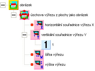 Ve Společných proměnných připravte dvě číselné proměnné: barva pod kurzorem myši a index barvy pod kurzorem. Na začátku skupiny tyto dvě proměnné nastavte na hodnotu -1 k indikaci, že pod kurzorem myši není platná barva. Následuje podmíněný příkaz testující, zda se nachází kurzor myši nad plochou obrázku. Test zajistíme prvkem test myši v oblasti s nastavenými parametry podle obrázku v okně. Je-li kurzor myši nad obrázkem, načteme barvu pod kurzorem funkcí načtení barvy bodu. Barvu uchováme v proměnné barva pod kurzorem myši. Souřadnice bodu k načtení barvy převezmeme ze souřadnic myši pozice myši v horizontálním směru a pozice myši ve vertikálním směru. V programech systému Petr je zajištěno, že informace o myši se až do další obsluhy čekání nezmění.
