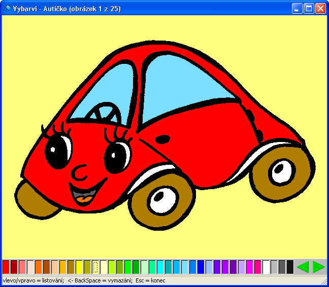 Opět program vyzkoušejte. Levým tlačítkem myši je možné přepínat obrázky a v pásu volby barev měnit vybranou barvu.