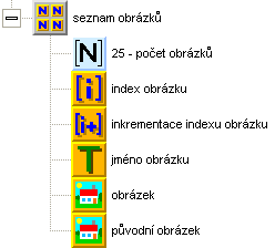 Nyní připravíme obrázky. Na konci lekce si stáhněte vzorové obrázky a rozbalte je do knihovny Picture. Obrázky přetáhněte z knihovny do programu včetně složky ve které jsou umístěné. V okně Společných proměnných a funkcí připravte seznam obrázků. Obrázků je 25. Seznam bude mít textovou položku jméno obrázku a obrázkové položky obrázek a původní obrázek.