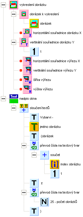 Prvním příkazem v cyklu je vykreslení obrázku okénka volby barev. V příkazu uvedeme pouze jediný parametr - obrázek k vykreslení. Nejsou-li ostatní parametry uvedeny, vykreslí se obrázek v levém dolním rohu okna.