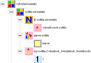 Na konec inicializace programu přidejte skupinu vytvoření komety. Bude obsahovat další 4 vložené skupiny, světlo od komety, ohon komety, tělo komety a skupina komety.