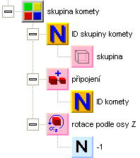Posledním objektem bude skupina komety. Je to jen skupina, ke které je připojen objekt komety. Abychom zajistili obíhání komety kolem Země po šikmé dráze, natočíme o kousek celou soustavu kolem osy Z.