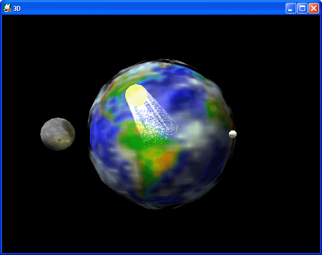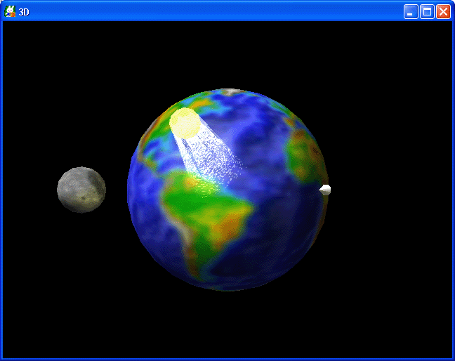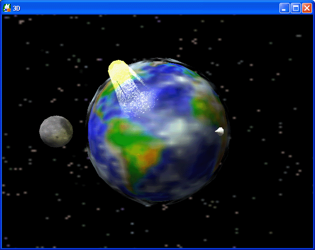 Spustíte-li program, měli byste vidět Zemi zahalenou v oblacích. Mraky se přitom pohybují souhlasně se Zemí.