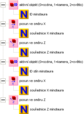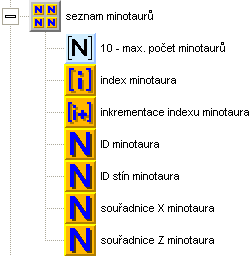 Teď si minotaury rozmnožíme. Připravte si seznam minotaurů. Počet minotaurů bude stačit 10, budeme je neustále recyklovat. V seznamu budeme potřebovat proměnné ID minotaura, ID stín minotaura, souřadnice X minotaura a souřadnice Z minotaura.