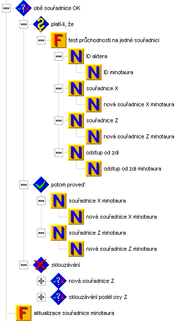 S novou souřadnicí budeme zacházet podobně jako při pohybu hráče. Nejdříve otestujeme, zda je nová souřadnice průchozí. Pokud ano, uložíme ji a aktualizujeme souřadnici minotaura.
