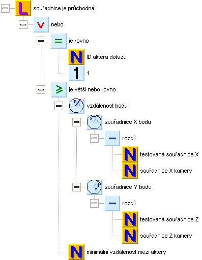 Nejdříve budeme testovat, zda testovaná pozice koliduje s hráčem. Souřadnice je v pořádku v případě, že tazatelem je hráč (s ID = 1) nebo vzdálenost je dostatečně velká.