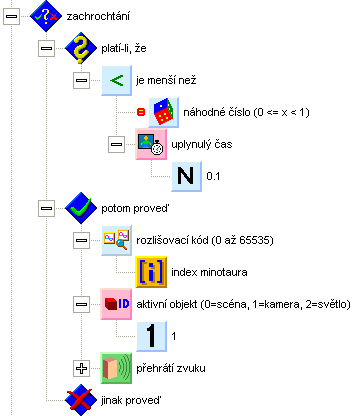 Už nám chybí jen nějaké herní detaily. Například pro zvýšení dojmu z hry chceme, aby se ozývaly náhodné zvuky. Doplníme je do obsluhy minotaurů. V závislosti na náhodě občas přehrajeme zvuk zachrochtání minotaura.