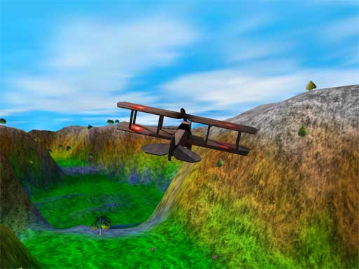 Opět jiný způsob ovládání bude u leteckého dopravního prostředku. Šipkami doleva a doprava ovládáme směrové kormidlo ovlivňující zatáčení. Rychlost zatáčení není okamžitá, ale mění se plynule. Nedrží-li hráč šipky vlevo a vpravo, směrové kormidlo se navrátí zpět do přímého směru a zatáčení se zas pomalu navrací do přímého směru. V závislosti na rychlosti zatáčení budeme měnit aktuální směr otočení letadla.