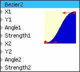 Filtr "Bezier2" je generátor 2-bodové Bezierovy křivky. Výstupní hodnota filtru je závislá na horizontální souřadnici X. Souřadnice X, vstupy i výstupní hodnota jsou typicky v rozsahu 0..1.
