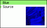 Filtr "Blue" extrahuje ze vstupního obrazu kanál modré barvy. Alfa složka obrazu (průhlednost) zůstává zachována. Signál není ohraničen na normovaný rozsah.