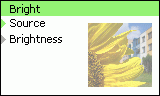 Filtr "Bright" mění jasové úrovně obrazu. Pro signál Brightness menší než 0.5 vynásobí vstupní signál dvojnásobkem hodnoty Brightness (tj. Yout = Yin*2*Brightness), pro Brightness větší než 0.5 vynásobí doplněk vstupního signálu dvojnásobkem doplňku Brightness (tj. Yout = 1 - (1 - Yin)*2*(1 - Brightness)). Signál není ohraničen. Alfa složka obrazu (průhlednost) není filtrem ovlivněna.