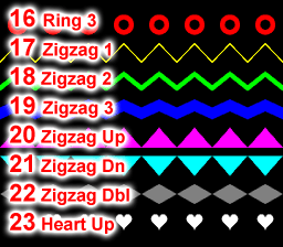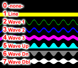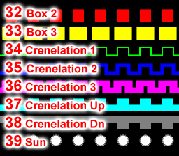 Size1..Size8 - velikost vzorku. Tento parametr má několik významů. Je rozdělen na 10 úseků. Číslo úseku s krokem 0.1 určuje počet opakování vzorku. Např. rozsah 0.91..1.0 opakuje vzorek 1x, rozsah 0.81..0.9 opakuje 2x až po rozsah 0.01..0.1, který opakuje 10x. Směrem nahoru je rozsah ohraničen hodnotou 1 (tj. minimální opakování je 1x), ale směrem dolů ohraničen není, tj. lze zadat i větší počet opakování než 10x. Rozsah jedné desetiny čísla je rozdělen na 2 úseky - pro nižší polovinu začíná vzorek na sudé poloze (tj. na přelomu okrajů), pro vyšší polovinu na liché poloze. Zbývající rozsah jedné poloviny desetiny čísla určuje velikost symbolů vzorku. Není však nutné se omezovat jen na 5 kroků setin čísla, jemnějším posunem lze velikost regulovat jemněji. Parametr Size funguje odlišně pro výplň Line - v tomto případě definuje šířku vykreslené čáry v plném rozsahu 0..1.