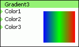 Color1..Color3 - vstupní barvy gradientu. Výstupní barva je lineární kombinací vstupních barev v závislosti na souřadnici X s hraničními hodnotami 0, 0.5 a 1. Vstupy nejsou ohraničeny.