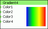 Filtr "Gradient4" je generátor 4-stupňového gradientu. Výstupní barva filtru je závislá na horizontální souřadnici X. Souřadnice X je typicky v rozsahu 0..1.