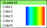 Color1..Color5 - vstupní barvy gradientu. Výstupní barva je lineární kombinací vstupních barev v závislosti na souřadnici X s hraničními hodnotami 0, 0.25, 0.5, 0.75 a 1. Vstupy nejsou ohraničeny.