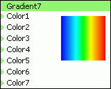 Filtr "Gradient7" je generátor 7-stupňového gradientu. Výstupní barva filtru je závislá na horizontální souřadnici X. Souřadnice X je typicky v rozsahu 0..1.