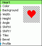 Bevel - šířka úkosu hrany. Při úkosu přechází hrana plynule z barvy pozadí na barvu popředí. Vstup je ohraničen do rozsahu 0..1.