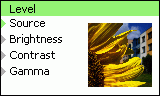 Filtr "Level" mění jasové úrovně obrazu pode vzorce Yout = ((Yn - 0.5)*contrast*contrast*4 + brightness) ^ (1/(gamma*gamma*3+0.25)). Signál je ohraničen do rozsahu 0..1 po změně jasu a kontrastu, ale před umocněním gamma. Alfa složka obrazu (průhlednost) není filtrem ovlivněna (až na ohraničení).