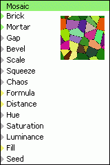 Filtr "Mosaic" je generátor mozaiky, založený na generátoru Cellular. Obraz rozdělí do nepravidelně rozmístěných buněk.