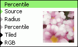 Percentile - režim operace. Vstup je ohraničen do rozsahu 0..1. Ve střední poloze 0.5 filtr rozostří obraz stejně jako filtr Blur. V počáteční poloze 0 vyhledává minimální jas okolních bodů. V koncové poloze 1vyhledává maximální jas okolních bodů.