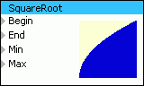 Filtr "SquareRoot" je generátor křivky druhé odmocniny. Výstupní hodnota filtru je závislá na horizontální souřadnici X podle vztahu Y=sqrt(X). Souřadnice X i výstupní hodnota jsou typicky v rozsahu 0..1.