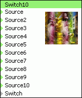 Source2 - obrazový vstup 2. Vstup není ohraničen. Na výstup je tento signál plně přenesen při řídicí úrovni Switch = 1/9 = 0.1111.