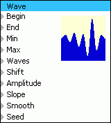 Waves - počet generovaných vln. Vstup není ohraničen. Hodnoty 0.01..1 s krokem 0.01 představují 1..100 vln.