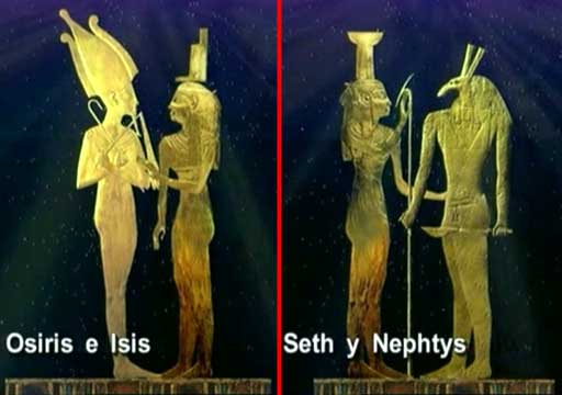 V tomto božském světě se zrodily ještě dva další páry - Osiris a Isis, a Seth a Nephtys. Dva páry fundamentálních sil, jež mají na starosti evoluční proces všech materiálních forem ve vesmíru a jejich zpětnou proměnu v ducha. Působením těchto kreativních božstev je dále členěna původní hmota a na základě mnoha matematických kombinací vznikají různé vibrační struktury. Na planetě Zemi vznikají stacionární říše rostlin a mobilní říše zvířat.