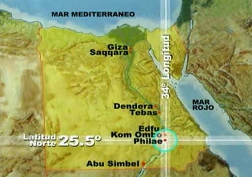 Norman Lokhir otočil chrám 76° na jihovýchod tak, aby z něj bylo možné pozorovat pohyby hvězdy Canopus nad jižním pólem. Stejným směrem je otočen i chrám v Edfu. Původně byly obě věže po tisíce let orientovány 15° na jih směrem k polární hvězdě Canopus, čímž se potvrzuje hypotéza, že všechny egyptské chrámy byly otočeny buď ke Slunci nebo k nějaké hvězdě. Nad Nilem můžeme spatřit impozantní stavbu. Dva pylony a velký počet sloupů tvoří vnitřní nádvoří, které končí u Nectanebova chrámu.