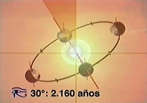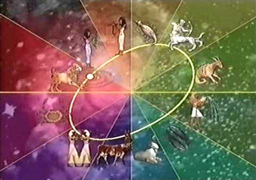 Sluneční soustava obíhá kolem centra galaxie po imaginární linii, nazývané ekliptika. Každý oběh trvá 25 920 let, což představuje věčný cyklus, kteří egyptští kněží nazvali kosmický rok. To oni rozdělili tento kruh na 12 sektorů, každý zaujímající 30°. Slunci trvá 2 160 let, než projde jedním z těchto dílů. Celý kruh tvoří 12 souhvězdí, každé z nich nese nějaké zvířecí jméno. Proto se tento kruh nazývá zvěrokruh nebo zodiak. Během této cesty získává planeta Země různé energie od těchto dvanácti znamení zvěrokruhu nebo od souhvězdí, která vládnou nad lidským osudem v každé reinkarnaci a která určují situace, které musí člověk zažít, aby se poučil.