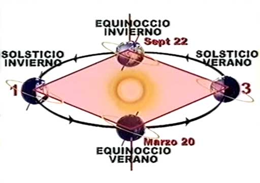 Slunce, při pohledu ze Země, během slunečního roku jakoby zaujímalo 4 kouty, 4 pozice, které omezují jeho pohyb nad horizontem. Jsou definovány jako zimní a letní slunovrat, a jarní a podzimní rovnodennost. Letní slunovrat, 21. června, je nejdelším dnem v roce a nejkratší nocí v roce. Naopak zimní slunovrat, 22. prosince, označuje nejkratší den a nejdelší noc. Jarní a podzimní rovnodennosti představují dva dny a dvě noci, které trvají shodnou dobu.